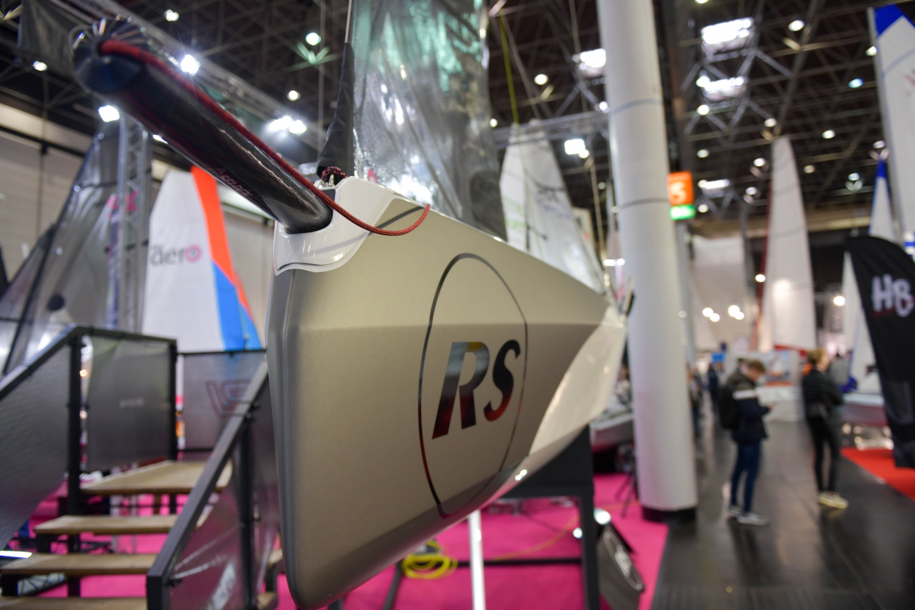 Bei den Jollen gibt es nicht so viel Neues. Die altbewährten Klassen haben ausgestellt, das Interesse war, sagen wir mal, überschaubar. Am Stand der moderneren Boote hörte man dann auch eher englisch, niederländisch, italienisch und spanisch (soweit ich es zuordnen konnte). RS hatte den größten Stand, mit einer Neuheit, dem RS Nova. Ein robustes PE-Boot mit den Maßen des aero nur preiswerter.
