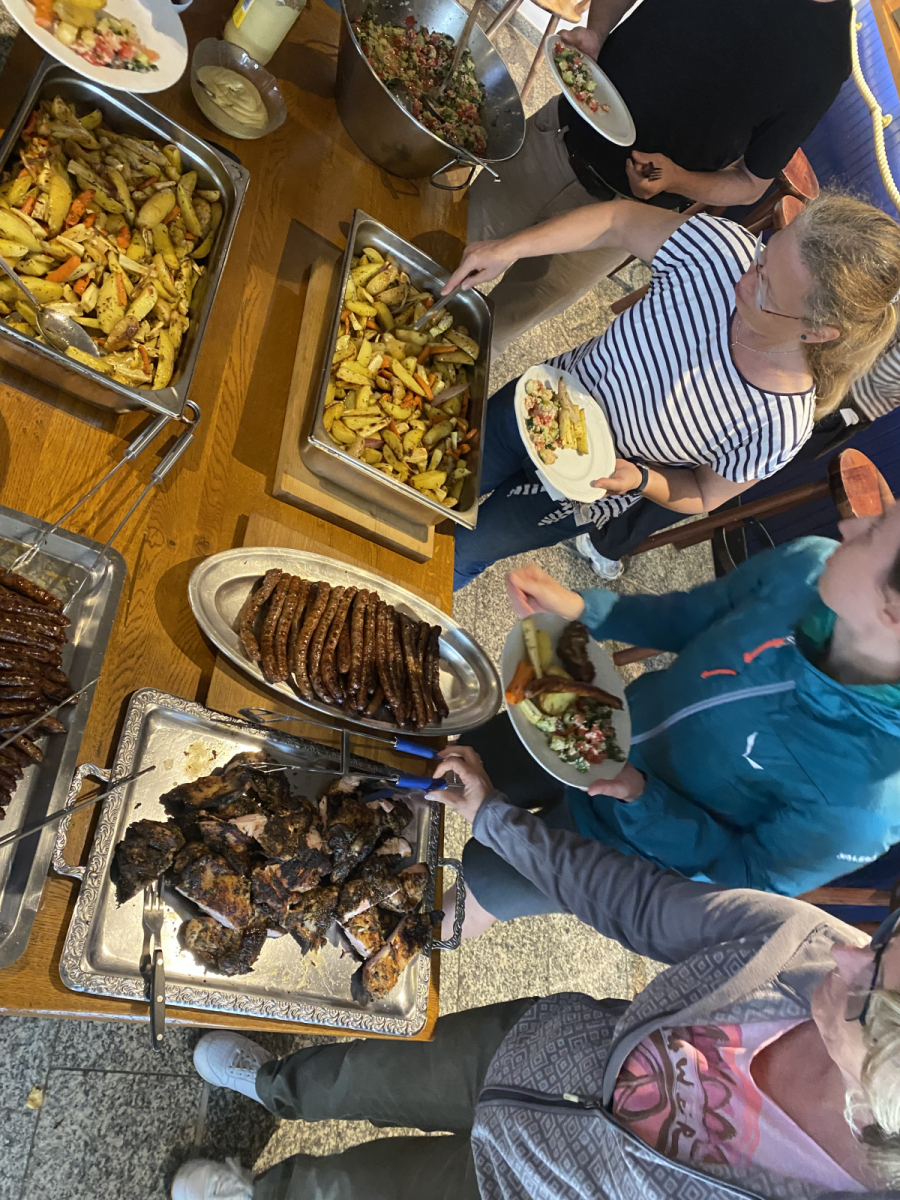 Bereits am Montagnachmittag versammelte sich ein engagiertes Team, um alle notwendigen Vorbereitungen zu treffen – Gemüse schneiden, Desserts zubereiten und Flaggen sortieren.