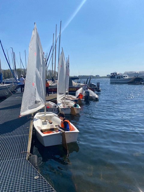 Als die „Optis“ wieder in den Hafen kamen, fuhren die Kinder der Lasergruppe raus und hatten bei diesem wunderbaren Wetter großen Spaß.