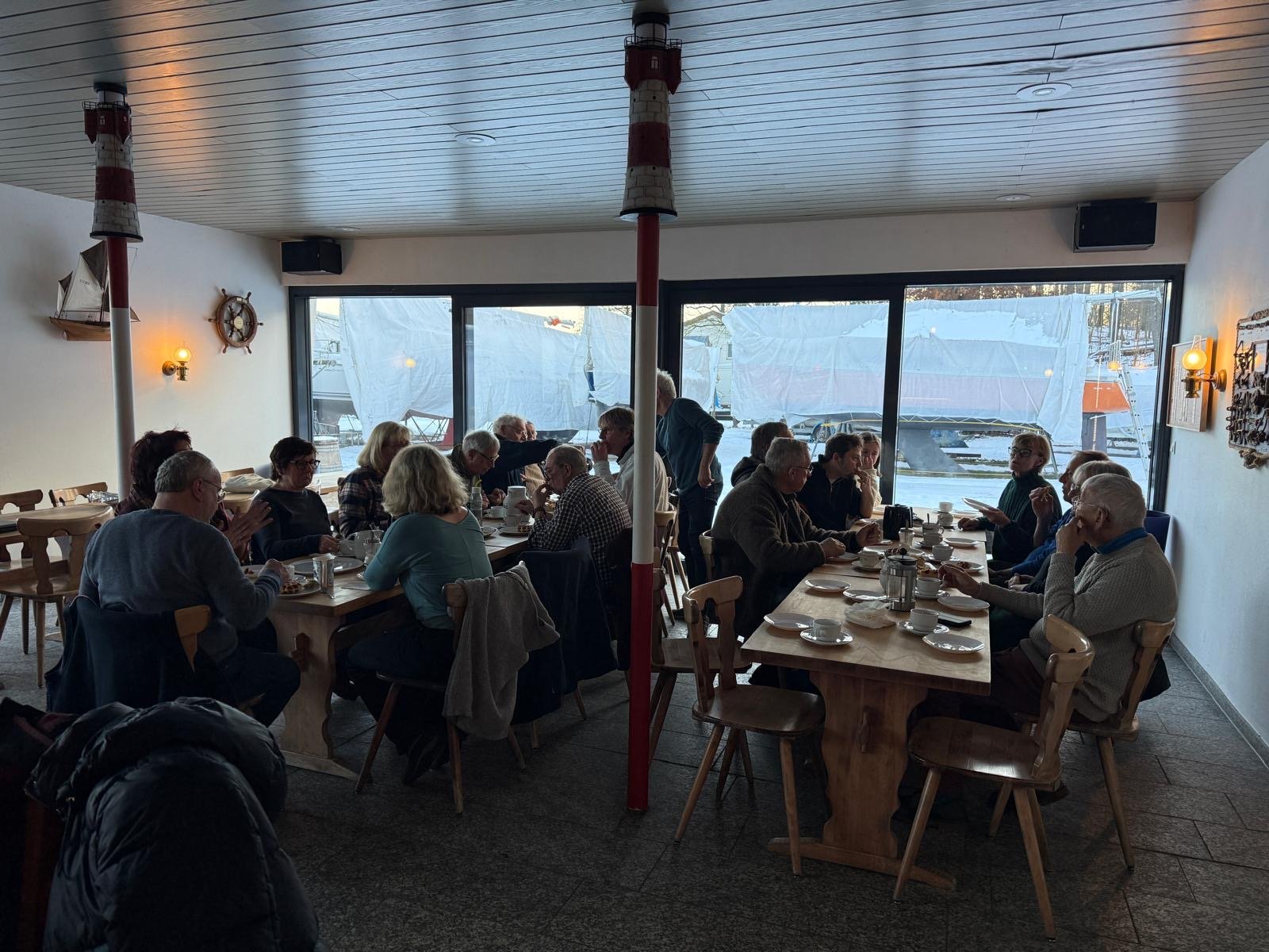 Nachdem alle die Betriebstemperatur im Freien gedrosselt hatten, ging es zu Kaffee und Kuchen ins Clubhaus. Lecker war’s und dazu gab’s auch noch belgische Waffeln von einem echten Belgier, serviert vom Präsidenten.