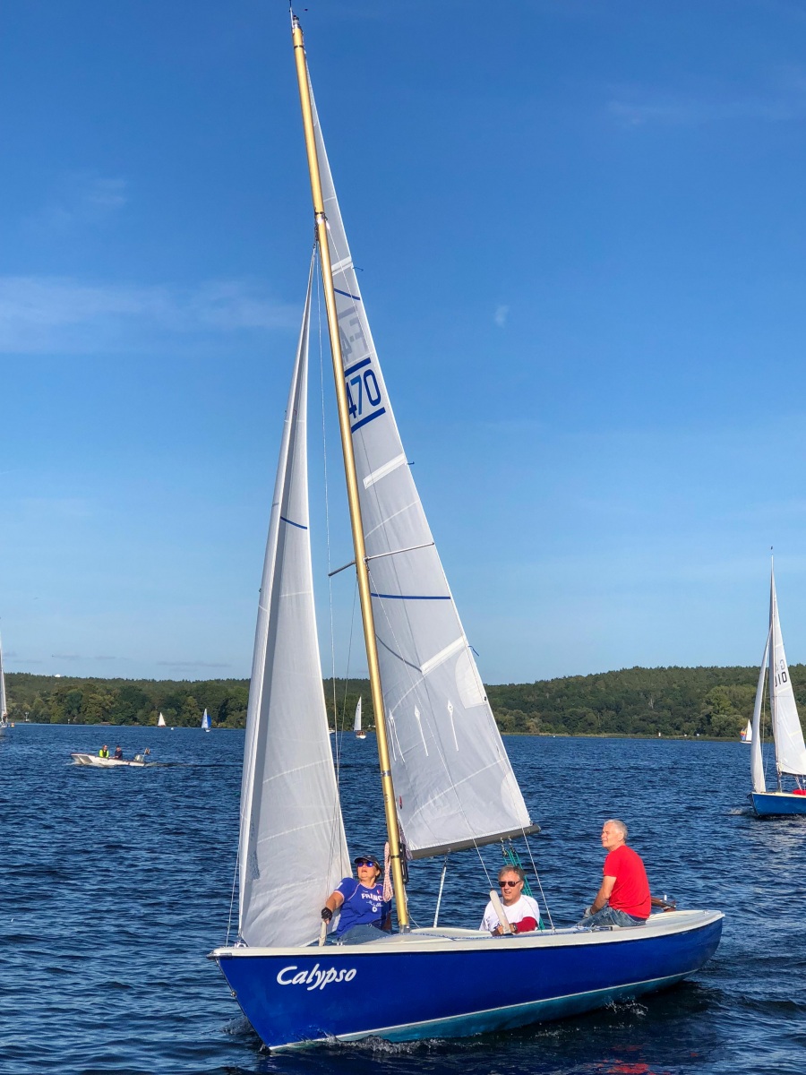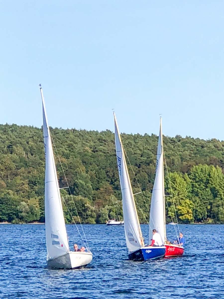So gestärkt ging es ab 10:30 wieder auf die Dreieckskurse auf dem Wannsee. Der Wind war deutlich besser als am Samstag, an den grundsätzlichen Platzierungen änderte sich aber bei den weiteren Wettfahrten nicht mehr viel.