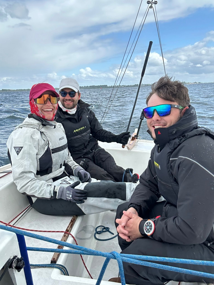 Die Stimmung an Bord war sehr gut. Im ersten Rennen gelang uns ein starker Start, und zu unserem Glück hatte der Wind auf etwa 10–12 Knoten aufgefrischt. Schon hier zeichnete sich ab: Es wird ein Drei-Boot-Rennen. Wir waren mit unserem dritten Platz im ersten Lauf sehr zufrieden.