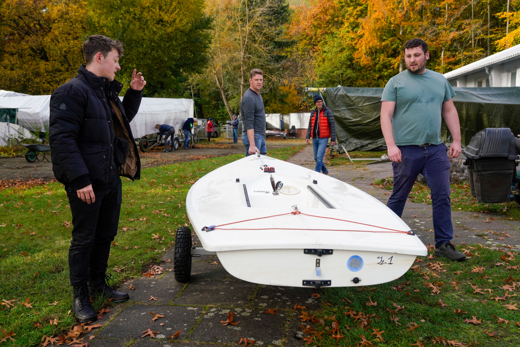 Wie immer mussten die Jollen in der Halle verstaut werden, das Grundstück gereinigt und von Laub und Unkraut befreit und so auf den Winter vorbereitet werden. Es wurde gekärchert, geputzt und geharkt und natürlich gab es zwischendurch auch immer wieder die nötige Zeit für ein Schwätzchen unter Segelfreunden.