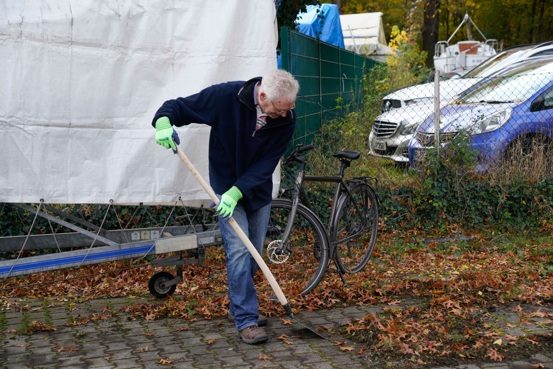 Wie immer mussten die Jollen in der Halle verstaut werden, das Grundstück gereinigt und von Laub und Unkraut befreit und so auf den Winter vorbereitet werden. Es wurde gekärchert, geputzt und geharkt und natürlich gab es zwischendurch auch immer wieder die nötige Zeit für ein Schwätzchen unter Segelfreunden.