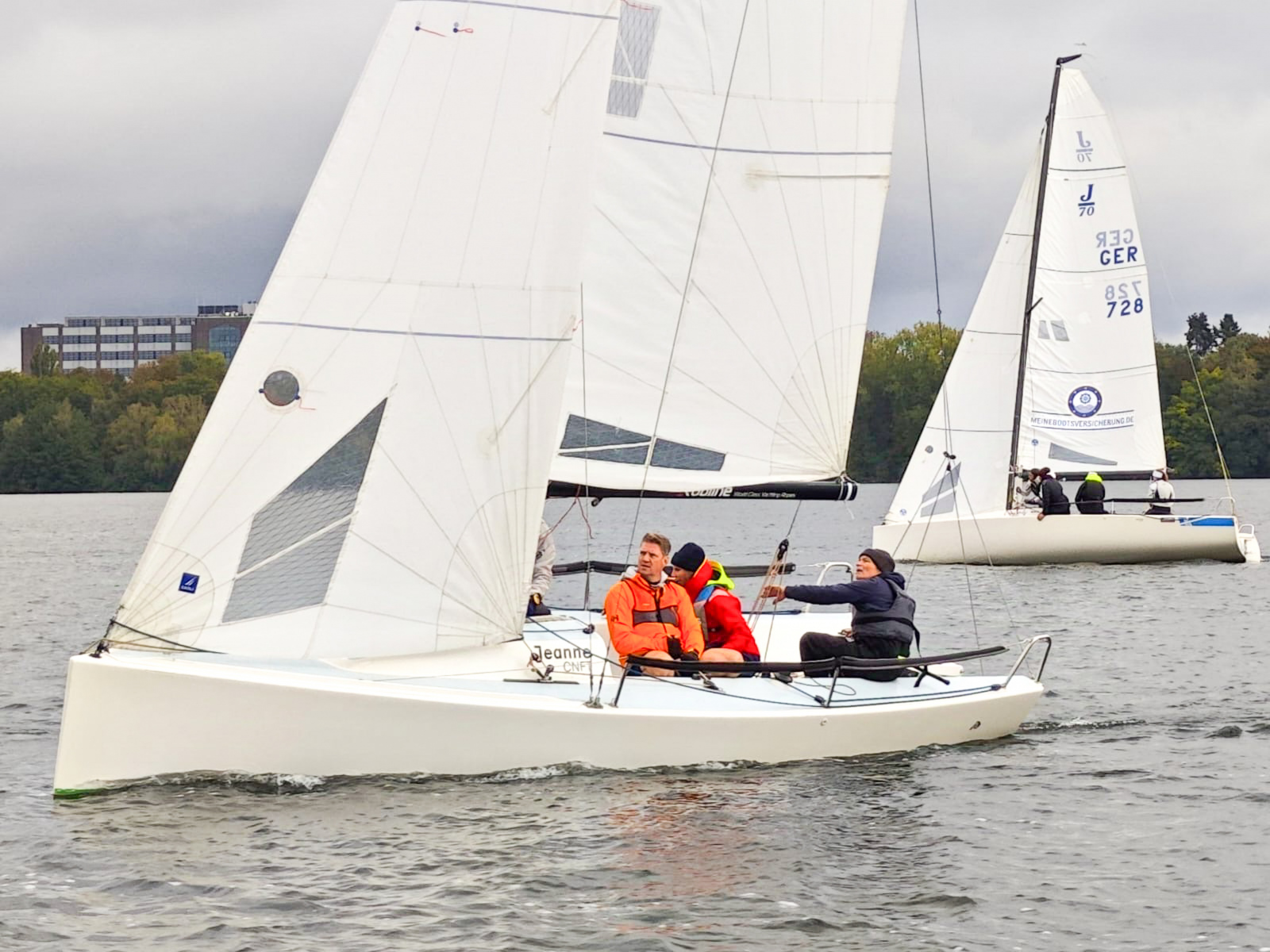 Sonja musste dieses Jahr viele Segler unter einen Hut bringen. Die klassischen Yardsticksegler, Folkeboote, neu dazu als eigenes Feld die 2.4 mR mit 5 Booten (von Sonja auch „Rentner-Optis“ genannt) und die J 70, sogar mit 9 Booten gemeldet und 8 am Start als Ranglisten-Regatta. Dies musste natürlich entzerrt und auf einer anderen Seite zusammengepackt werden, um nicht 5 verschiedene Starts zu haben.